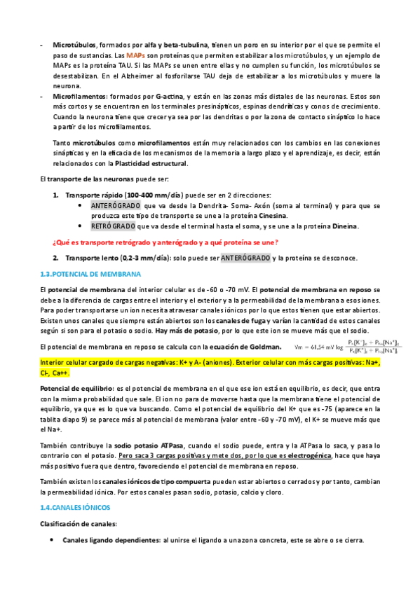 Temario completo de biología de las células nerviosas, con imágenes de los PDF de las profesoras
