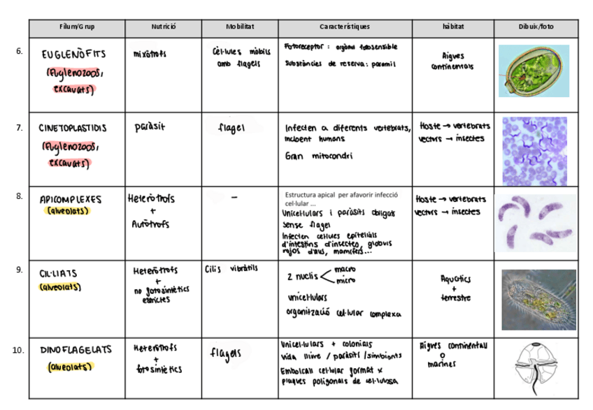 Activitat grup mitjà sobre els protists, serveix també com a resum del tema
