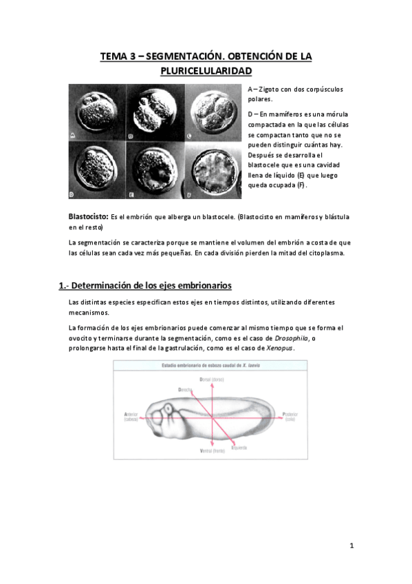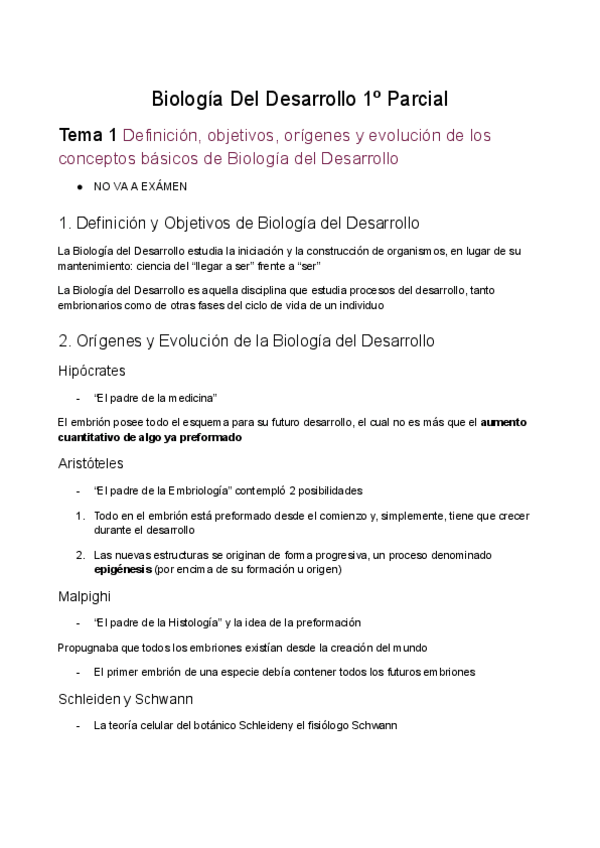 Apuntes de teoría del primer parcial de Biología del desarrollo