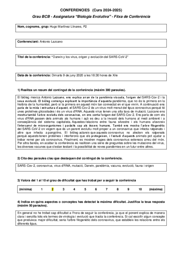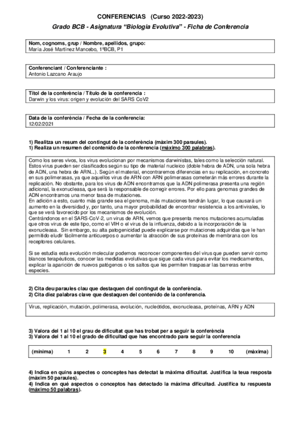 He publicado nuevos trabajos de 1º Biología Evolutiva: Ficha-conferencia.docx