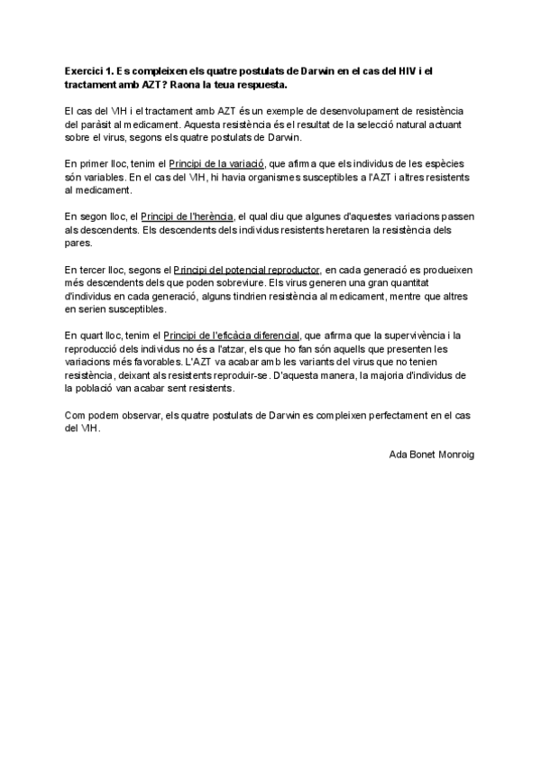 Actividad voluntaria Principios Selección natural y Ejercicios 1, 2, 3.1, 3.2, 3.3