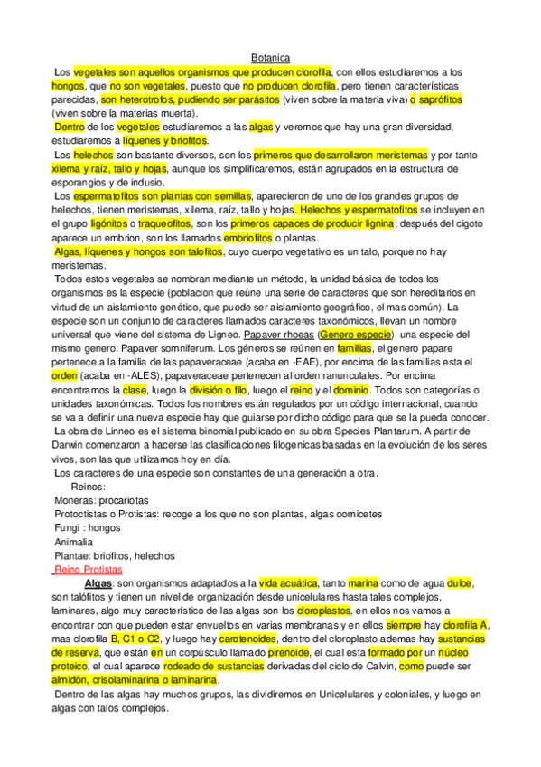 General Biology Exámen Botánica