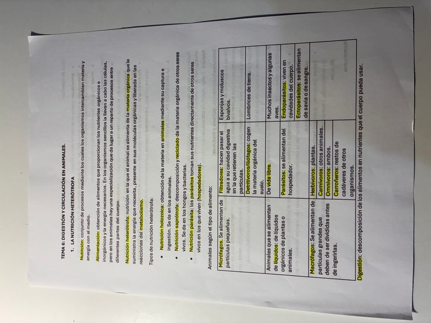Apuntes de la nutrición en animales detalladamente, los aparatos(digestivo,respiratorio, circulatorio y excretor)