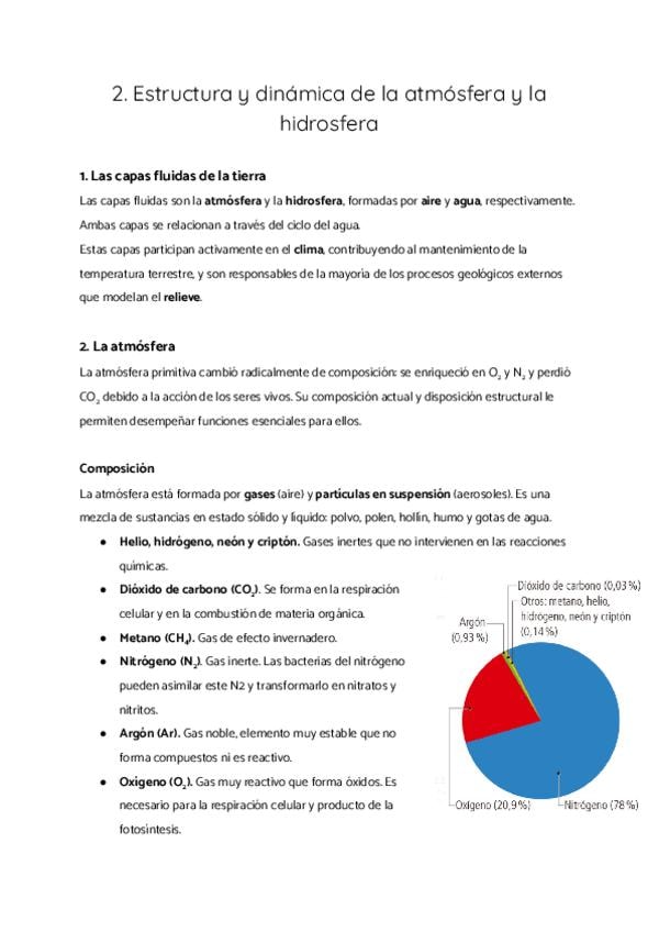 1. Las capas fluidas de la tierra 2. La atmósfera 3. La hidrosfera 4. El relieve terrestre: procesos geológicos internos y externos 5. Riesgos de origen externo