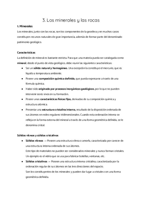 1. Minerales 2. Rocas 3. El microscopio petrográfico 4. Usos de los minerales y las rocas 5. Geodiversidad y patrimonio geológico