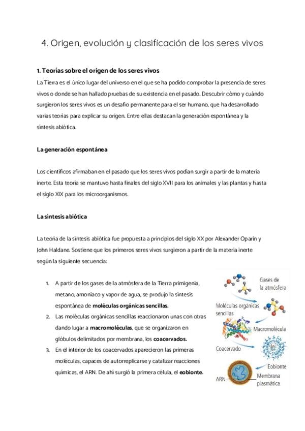 1. Teorías sobre el origen de los seres vivos 2. Primeras teorías evolucionistas 3. Evidencias de la evolución 4. El proceso evolutivo 5. Especiación y taxonomía 6. El reino Moneras 7. El reino Protoctistas 8. El reino Hongos