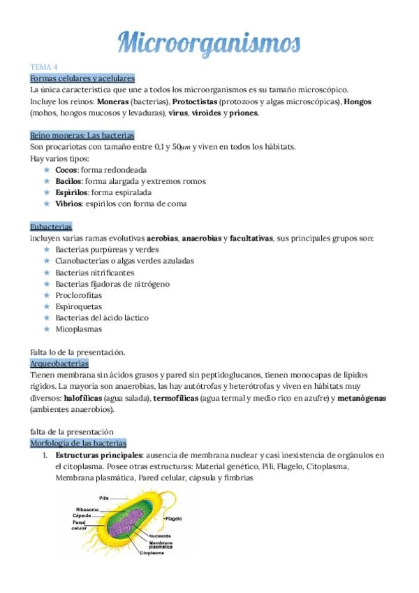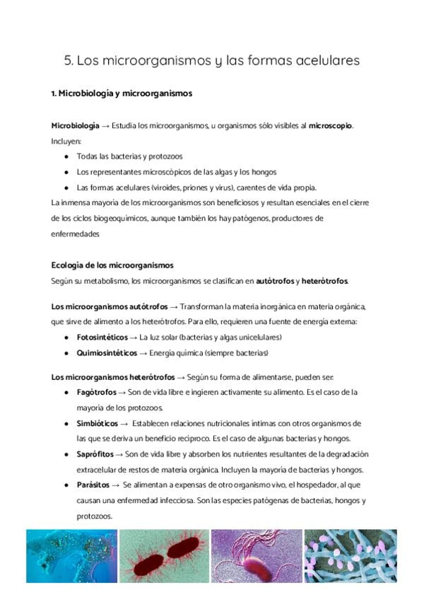 1. Microbiología y microorganismos 2. Las formas acelulares 3. Los microorganismos como agentes causales de enfermedades infecciosas 4. El estudio de los microorganismos 5. Transferencia genética horizontal en bacterias y resistencia a antibióticos