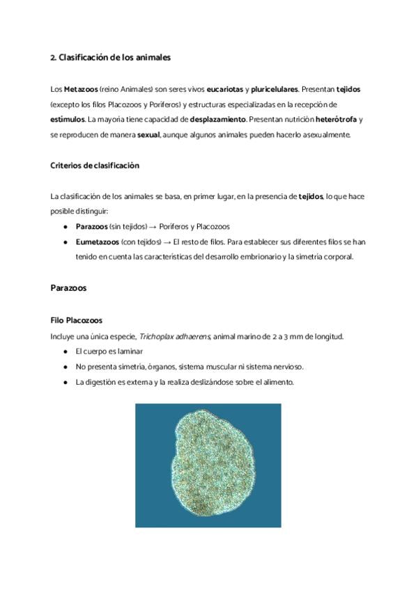 PARTE 2 Clasificación de los animales Parazoos: - Placozoos - Poríferos Eumetazoos: - Cnidarios - Platelmintos - Nematodos - Anélidos - Moluscos