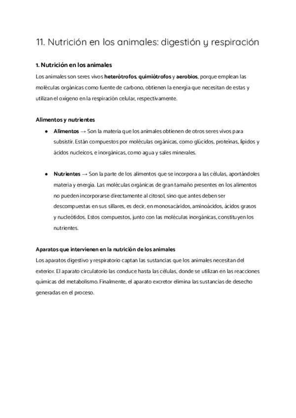 1. Nutrición en los animales 2. Digestión en los animales 3. El aparato digestivo en los animales 4. Respiración en los animales 5. Aparatos respiratorios en los animales