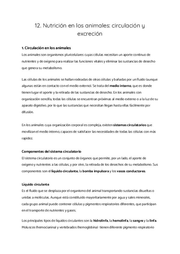 1. Circulación en los animales 2. Sistemas de transporte no especializado 3. Sistemas circulatorios abiertos 4. Sistemas circulatorios cerrados 5. Excreción en los animales 6. Aparatos excretores en los animales 7. Formación de la orina en la nefrona 8. O