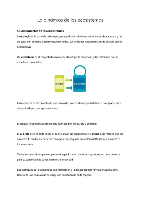 1. Componentes de los ecosistemas 2. Niveles tróficos. Flujo de materia y energía 3. Ciclos biogeoquímicos: carbono, nitrógeno, fósforo y azufre 4. Cadenas y redes tróficas. Pirámides tróficas 5. Sucesiones y regresiones ecológicas 6. Adaptaciones de los