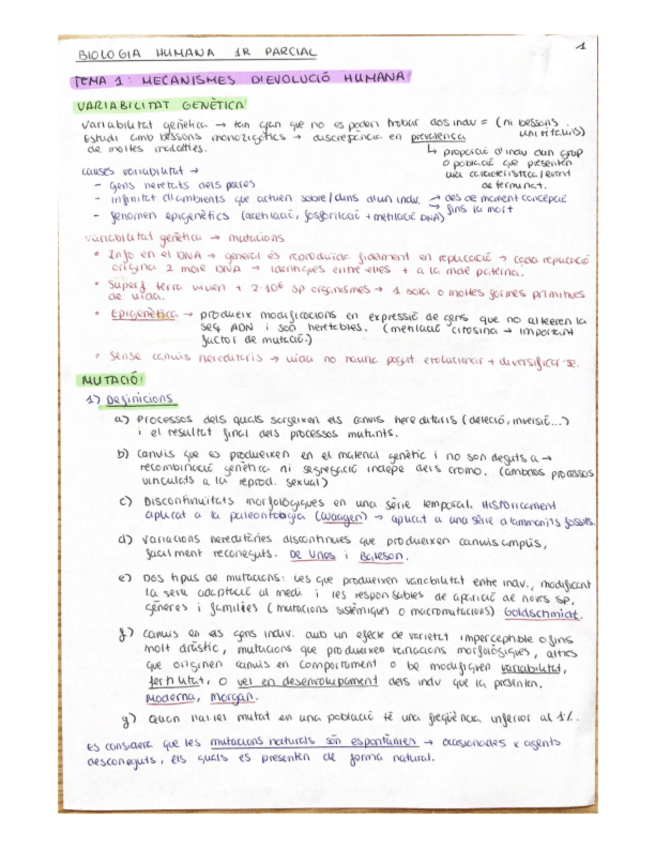 bio humana - apunts 1r parcial