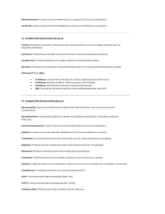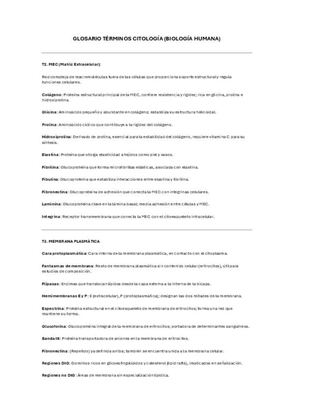Glosario con nombres de proteínas y términos nuevos de los temas de citología (T.1-T.20)