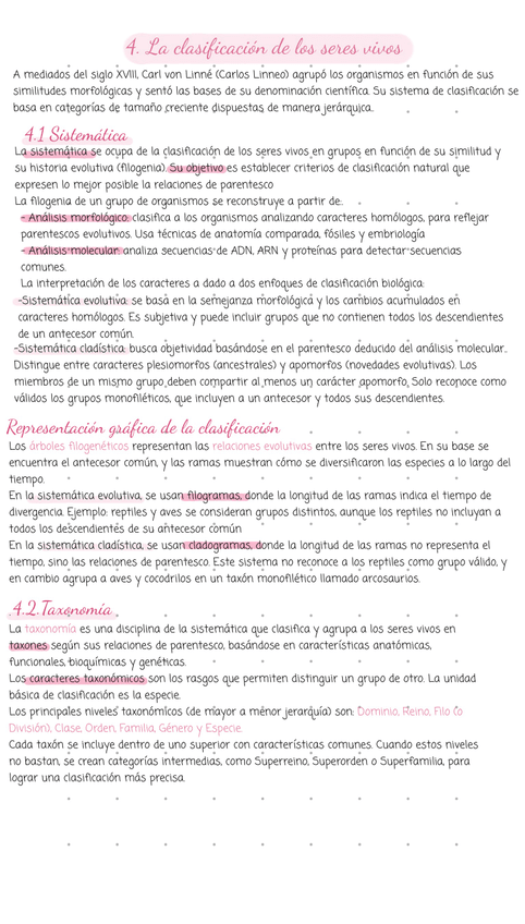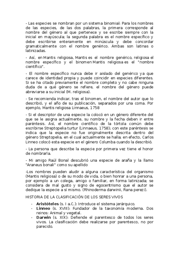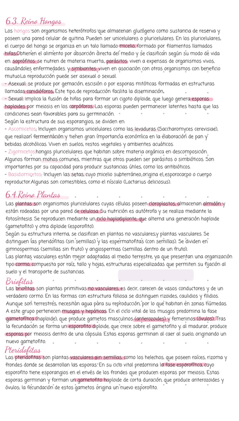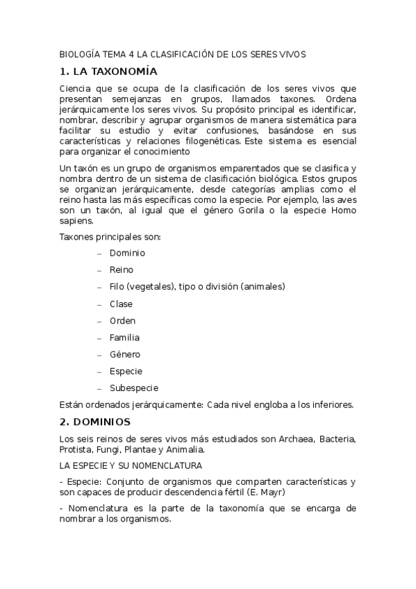 Apuntes Tema 4 Biología 1 Bachillerato. La clasificación de los seres vivos (falta el reino animal)
