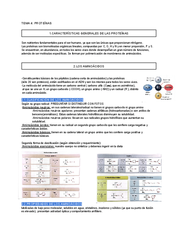 Biomoléculas orgánicas: resumen de proteínas(aminoácidos, proteínas y enzimas)