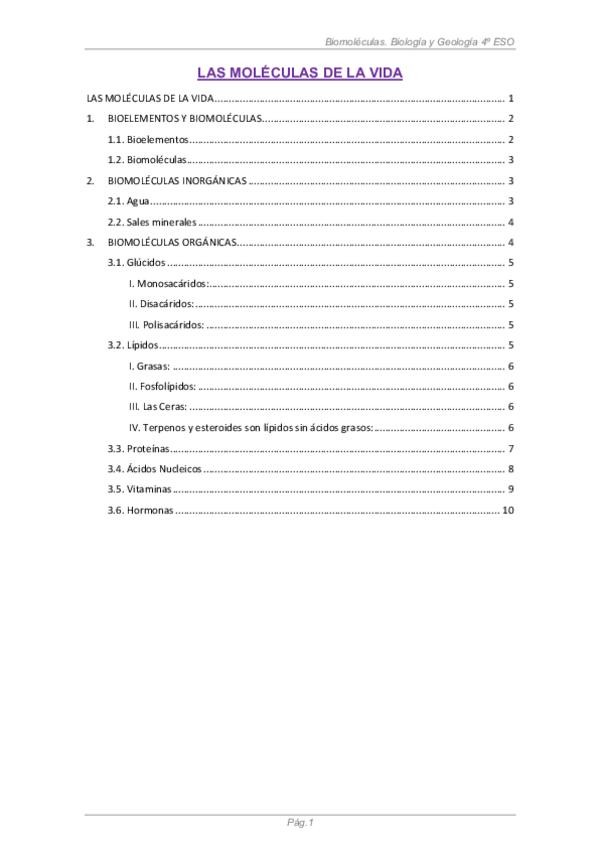 He publicado nuevos apuntes de 1º Biología I: 1. Biomolecules