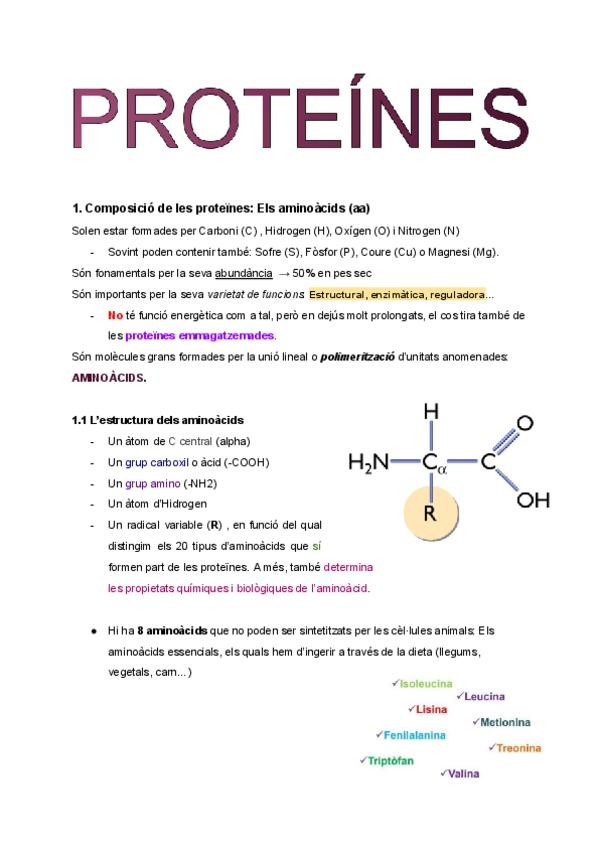 Apuntes completos de proteínas en catalán para las PAU