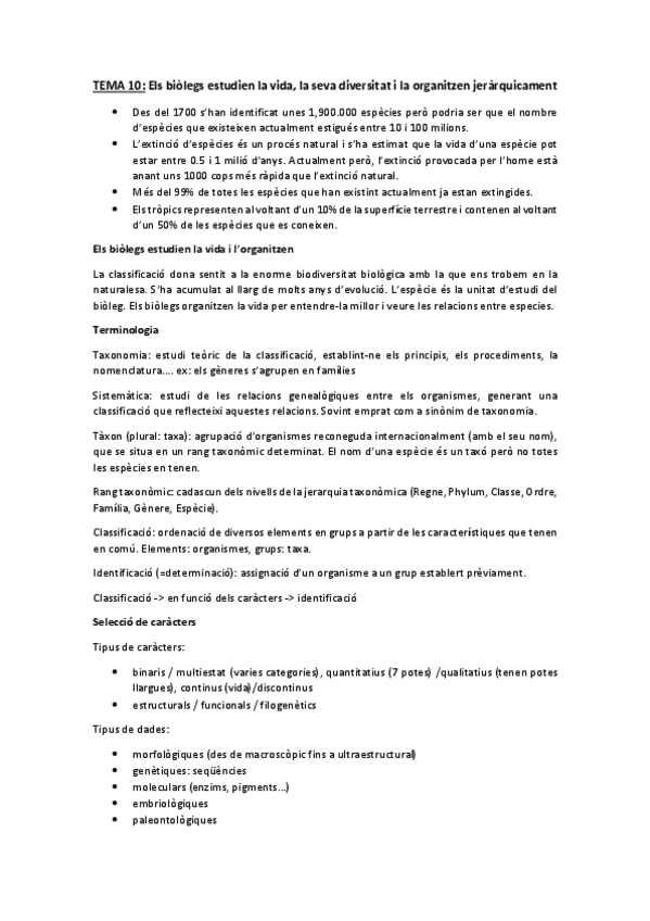 Tema 10. Els biòlegs estudien la vida, la seva diversitat i la organitzen jeràrquicament