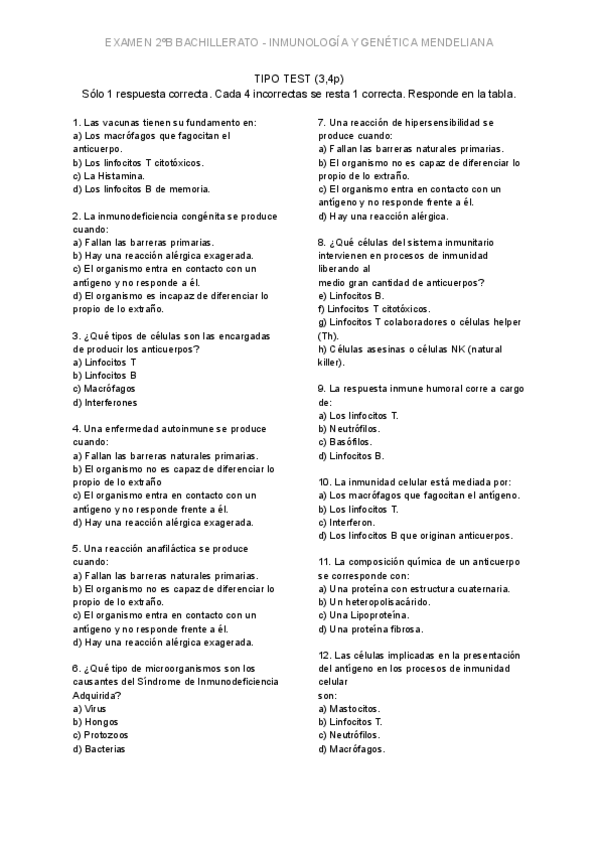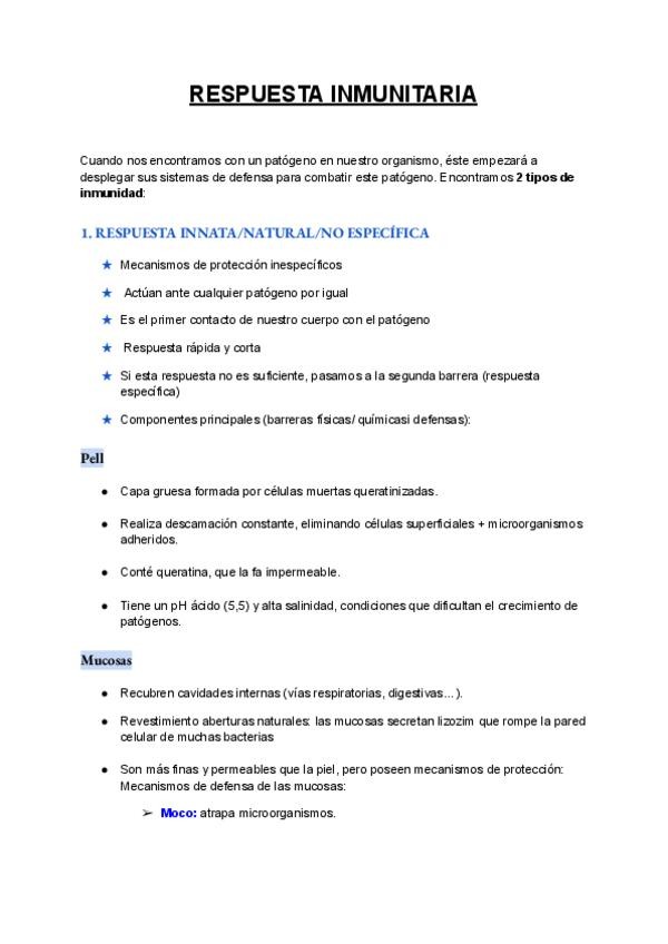 Apuntes del tema de inmunología de segundo de bachillerato también sirven para la PAU