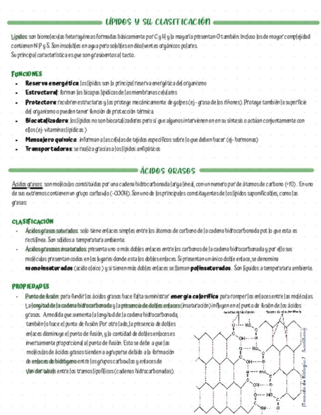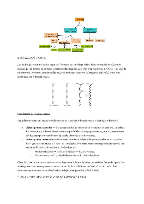 Apuntes sobre los lípidos bien organizados y elaborados a partir de respuestas de exámenes anteriores de PAU. Están enfocados para sacar un sobresaliente.