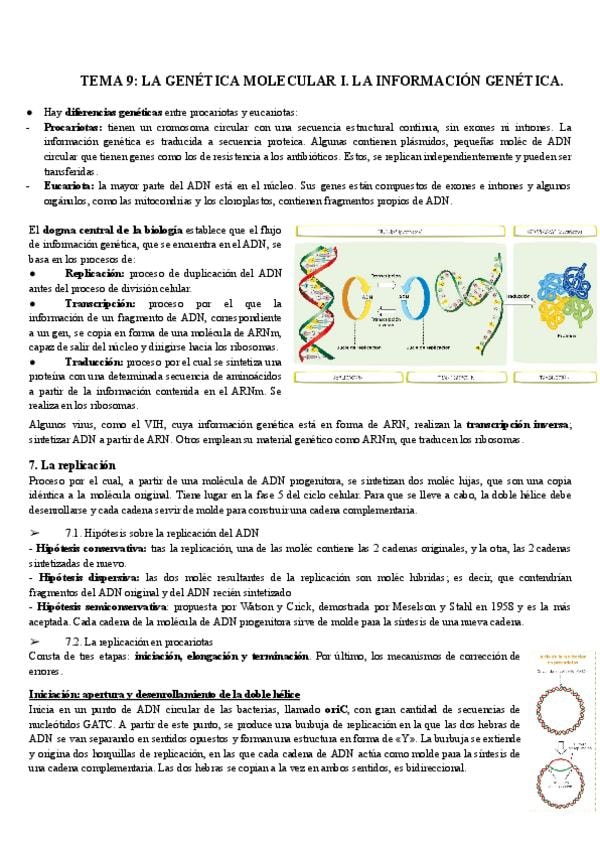 Apuntes del tema nueve del libro de biología de segundo de bachillerato para estudiar para la pua sin la genética mendeliana la cual no entra