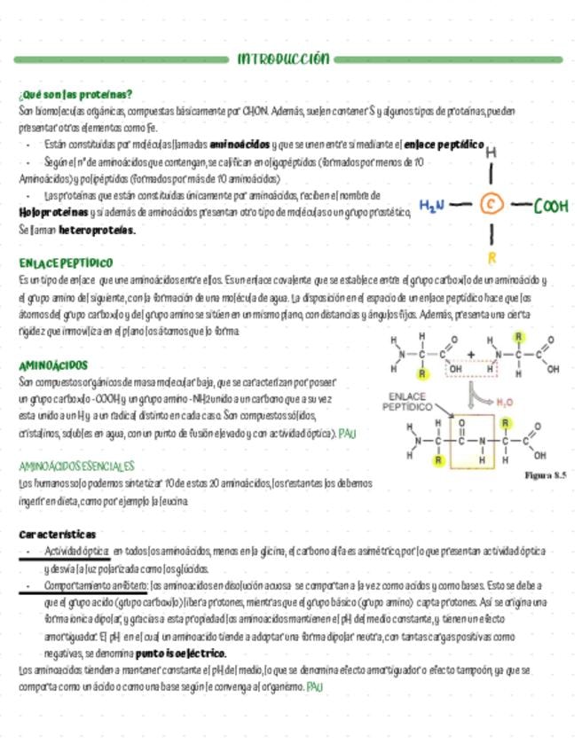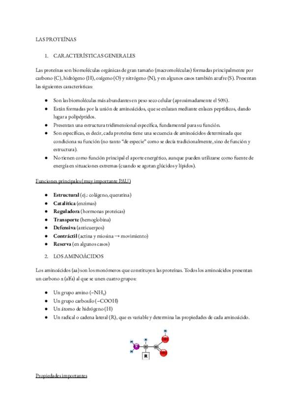 Apuntes sobre las proteínas, enfocados para la Pau y elaborados a partir de respuestas de PAU de exámenes anteriores.
