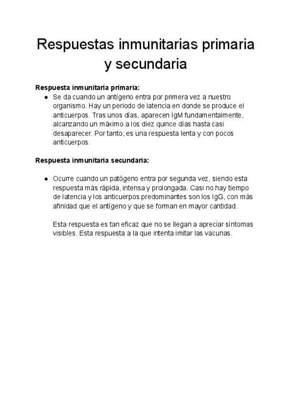 Respuestas inmunitarias primaria y secundario