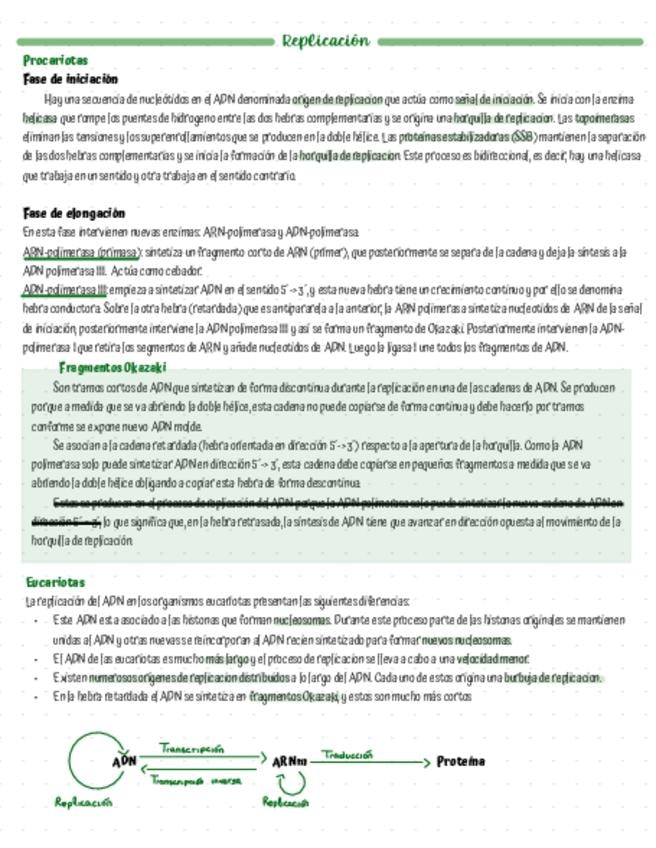 apuntes sobre los procesos de replicación, transcripción y traducciones, muy bien organizados y enfocados para la PAU