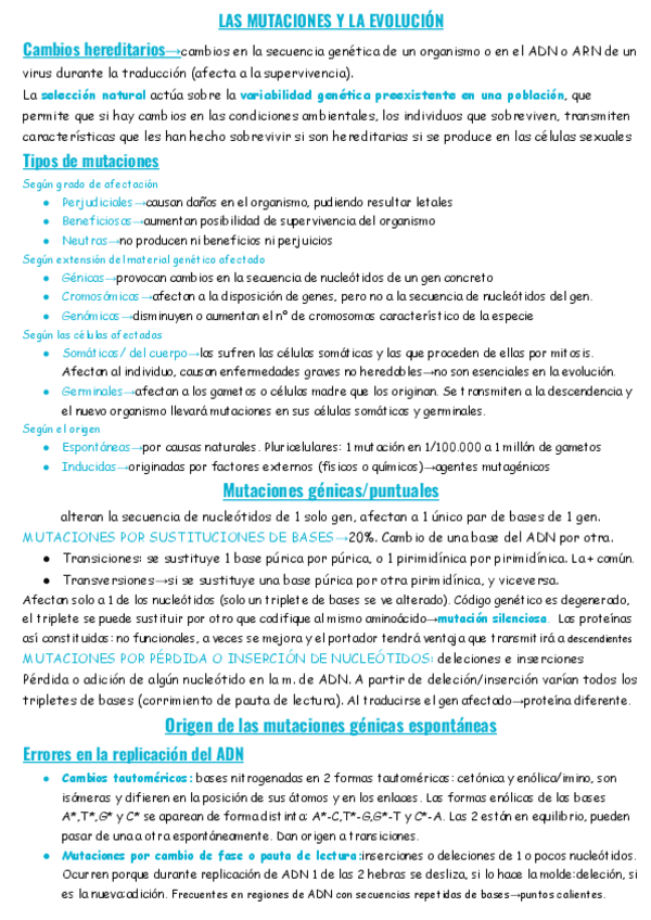 2° bachillerato y PAU: LAS MUTACIONES Y LA EVOLUCIÓN