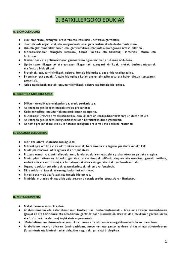 BIOLOGIA USaP - 2. BATX OSOA + ARIKETAK (batzuk erantzunekin)