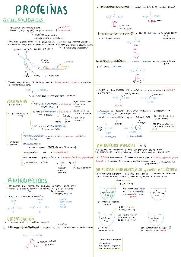 Apuntes completos de Biología (2º de Bachillerato) sobre el tema de proteínas, con el contenido totalmente desarrollado: aminoácidos, enlace peptídico, propiedades, niveles de estructura, funciones y clasificación. Material claro, bien organizado y con es