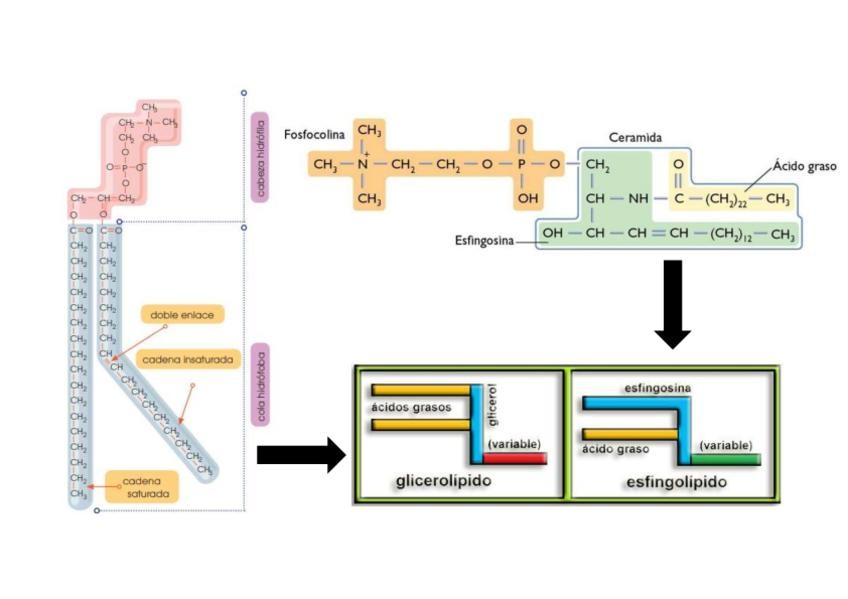 Aquí os dejo una imagen con las diferencias de los esfingolipidos y los fosfolipidos