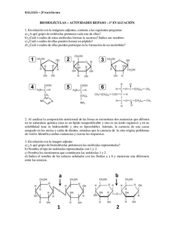 Aquí os dejo una mezcla de ejercicios sobre las biomoléculas: glúcidos, proteínas, lípidos, enzimas