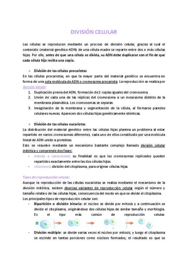Resumen teoría DIVISIÓN CELULAR Biología 2º Bachillerato. Orientado a la PAU 2026 Andalucía