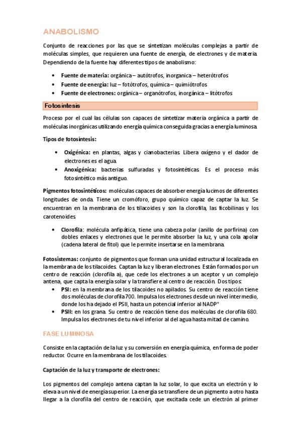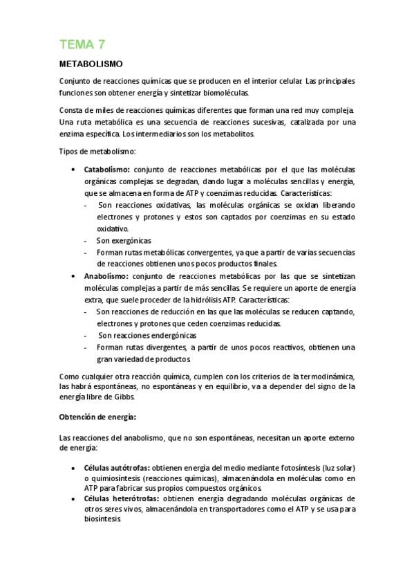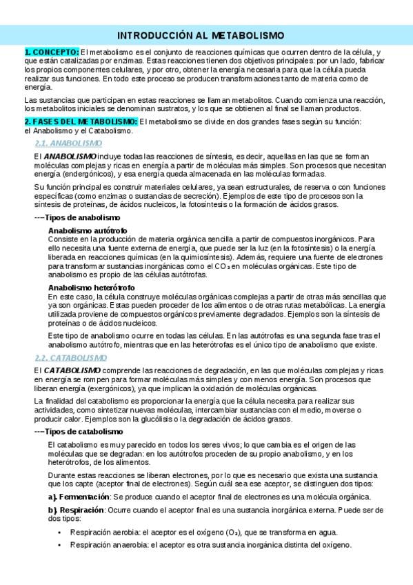 Resumen teoría METABOLISMO Biología 2º Bachillerato. Orientado a la PAU 2026 Andalucía