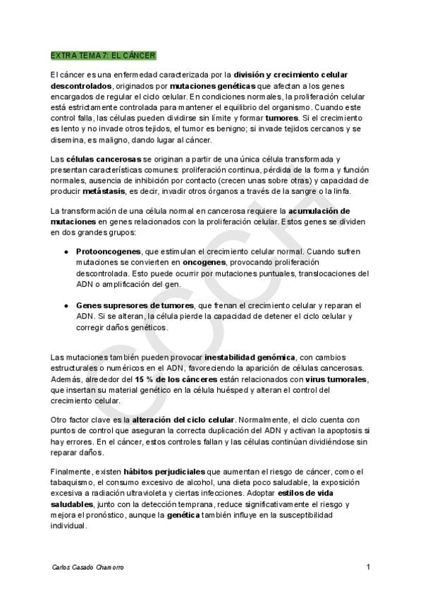 Extra sobre el cáncer que completa el tema de DIVISIÓN CELULAR
