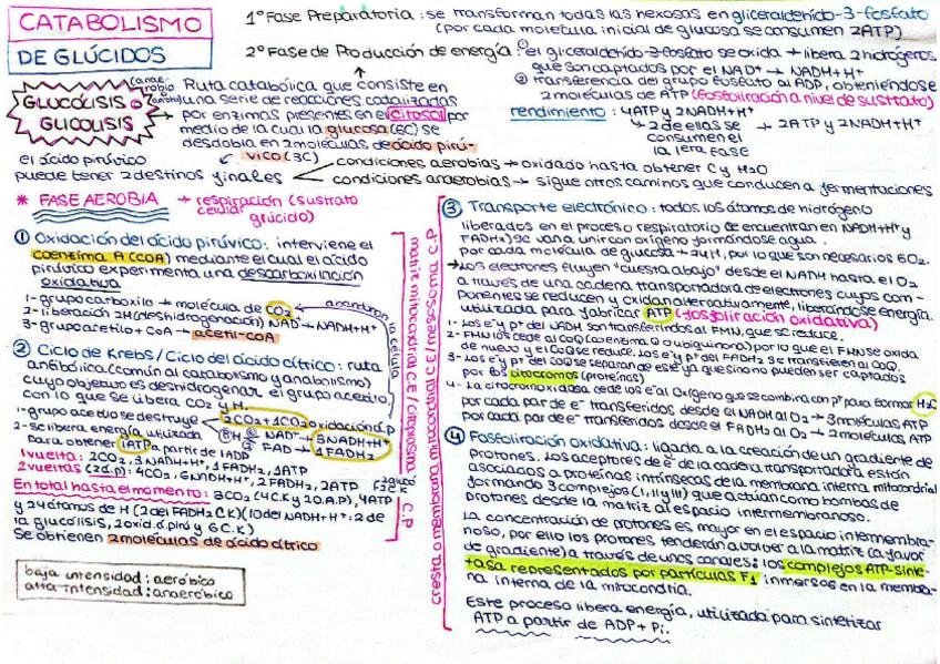 Esquema del tema de catabolismo completo a excepcion de catabolismo de los trigliceridos y de las proteinas SELECTIVIDAD