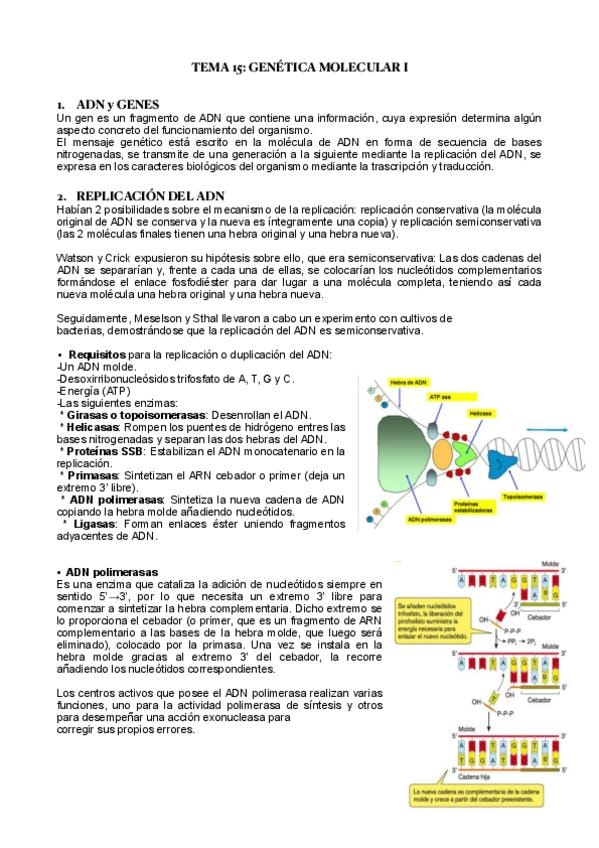 Tema de genética molecular resumido al máximo posible para selectividad