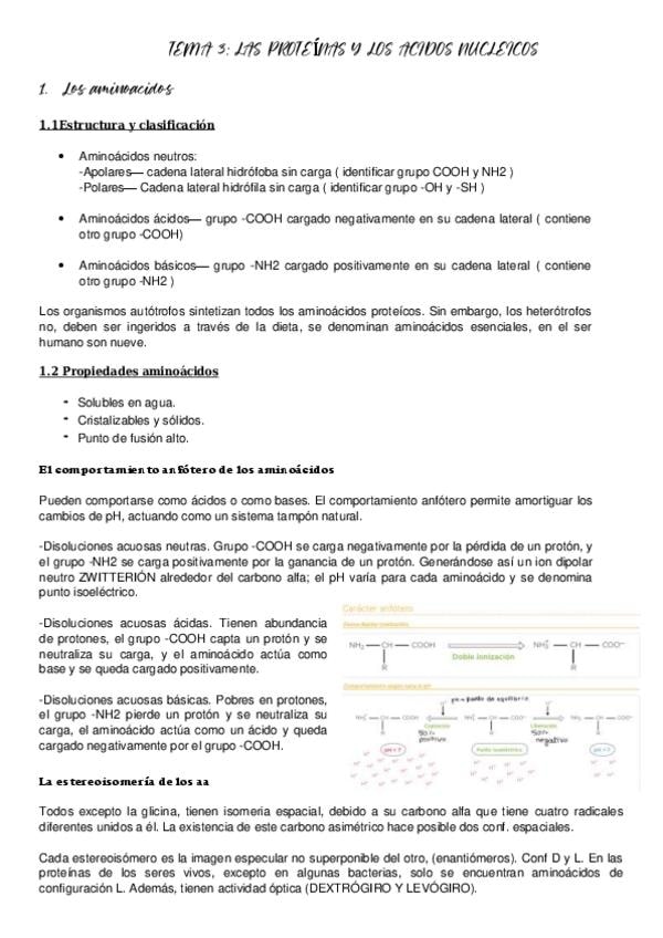 Tema 3 biologia: LAS PROTEÍNAS Y LOS ACIDOS NUCLEICOS resumido para la PAU 2026 de la UCLM