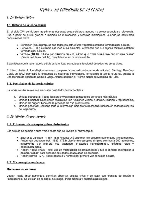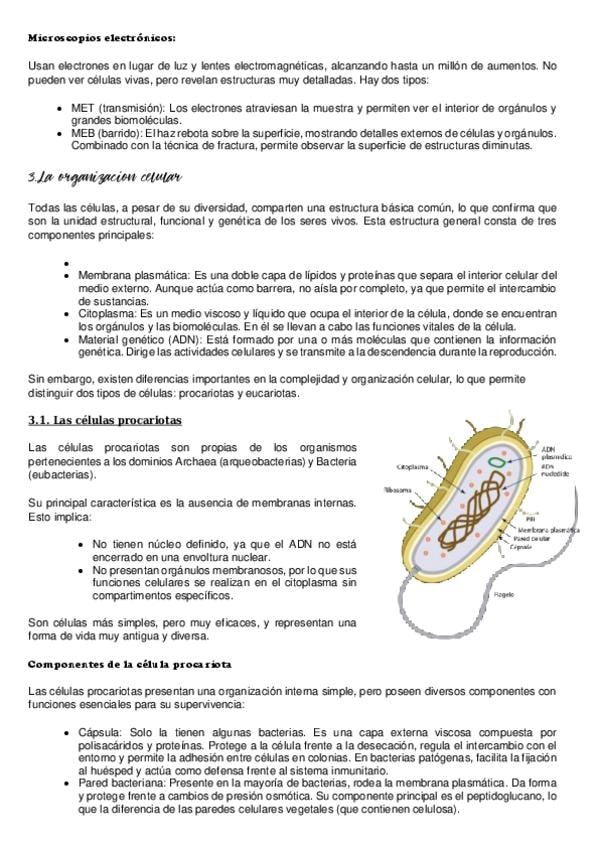 tema 4 biologia: la estructura de la celula resumido para PAU 2026 de la UCLM