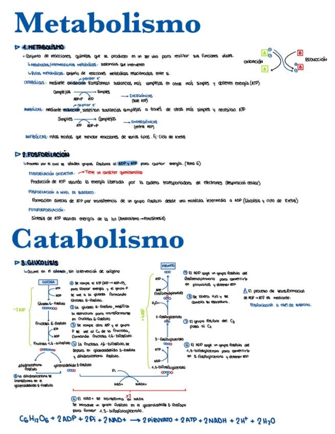 Ambos temas de Metabolismo resumidos (Catabolismo , Anabolismo) en 21 páginas (se que es más de lo normal pero disculpadme, fueron los primeros apuntes que hice para compartir). Mascado, con fragmentos de guías extraídas de páginas externas para facilitar
