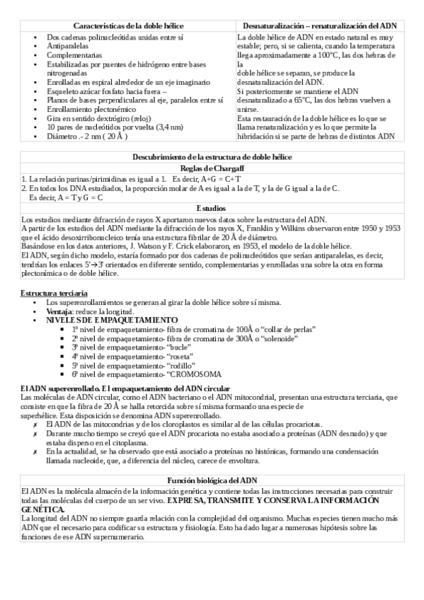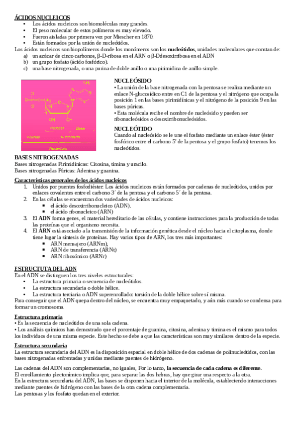 Apuntes TEMA ÁCIDOS NUCLEICOS para 2 de bachillerato y preparación de la EVAU