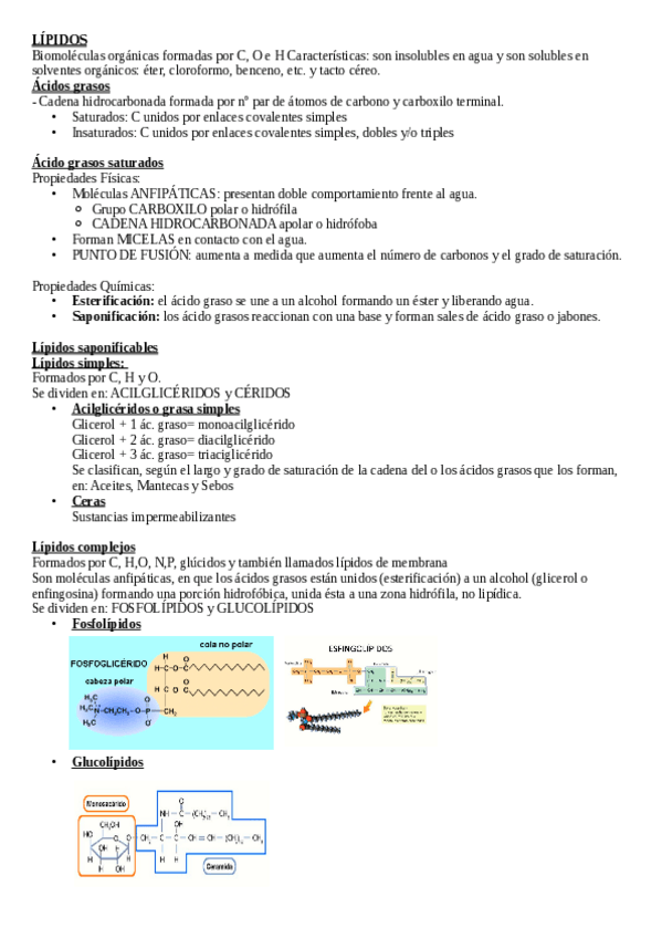 Apuntes TEMA LÍPIDOS para 2 de bachillerato y preparación de la EVAU