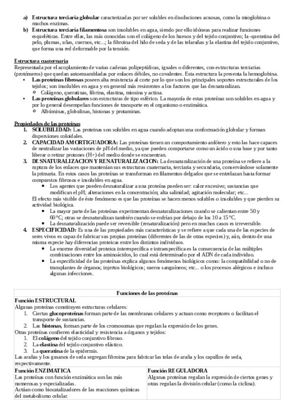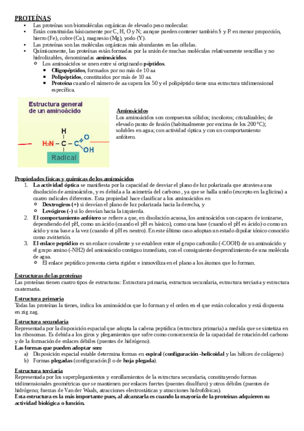 Apuntes TEMA PROTEÍNAS para 2 de bachillerato y preparación de la EVAU