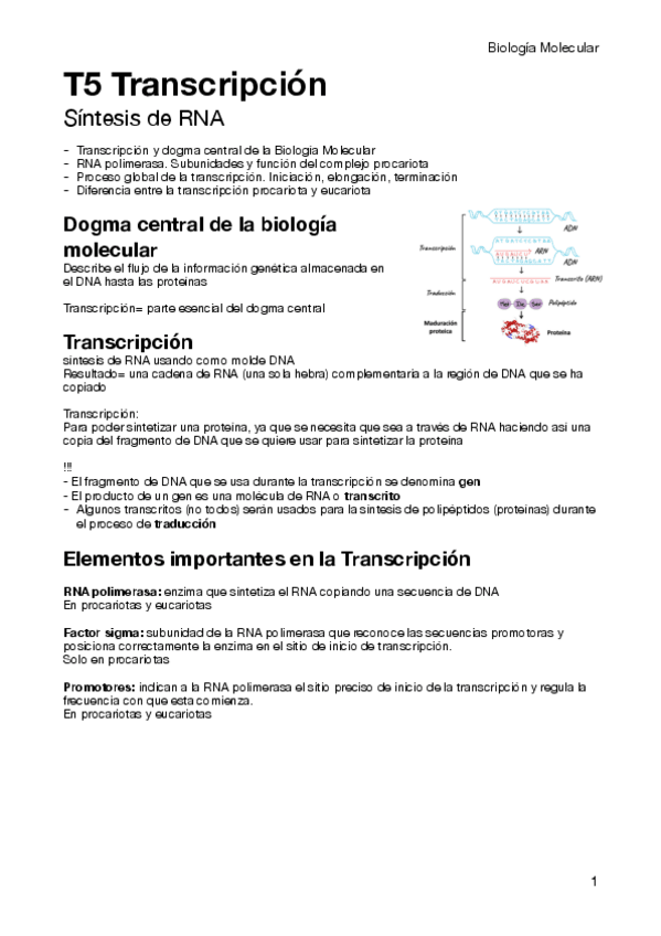 Apuntes de biología molecular (biología tema 1- tema 7)