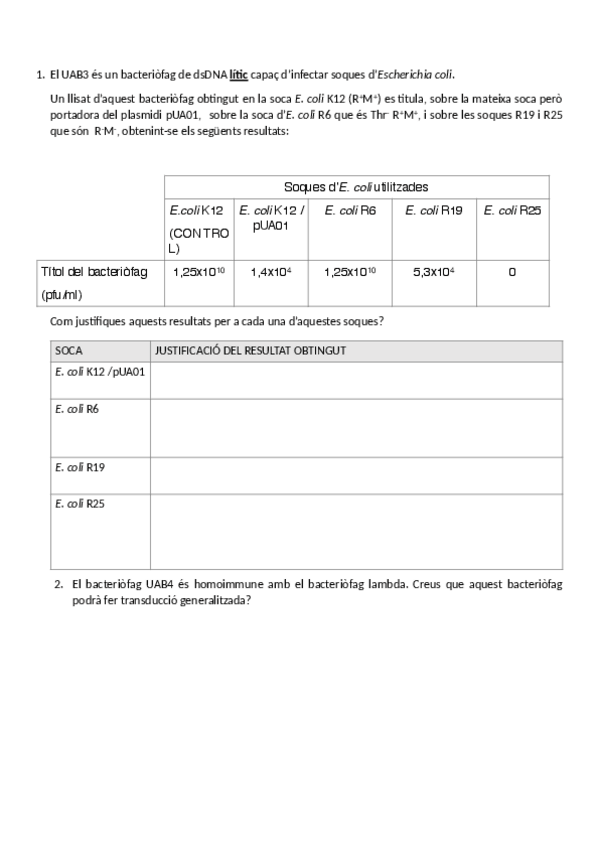 He publicado nuevos ejercicios de 3º Biología Molecular de Procariotas: Exercicis Parcial 1