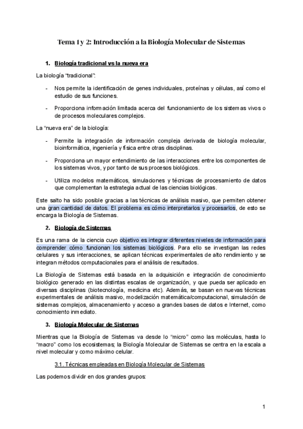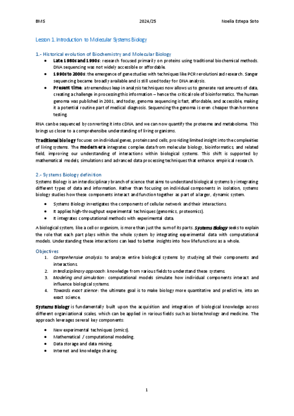 He publicado nuevos apuntes de 4º Biología Molecular de Sistemas: Apuntes Bloque I