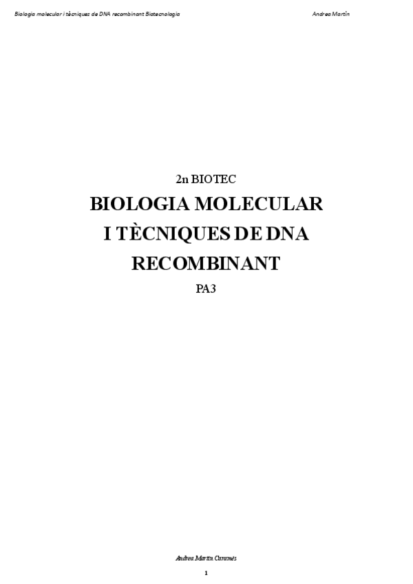 He publicado nuevos apuntes de 2º Biologia molecular i tècniques de DNA recombinant: Biologia molecular