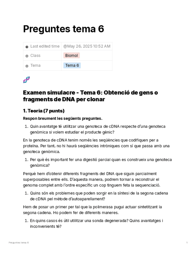 He publicado nuevos apuntes de 2º Biologia molecular i tècniques de DNA recombinant: Preguntes-tema-6.pdf