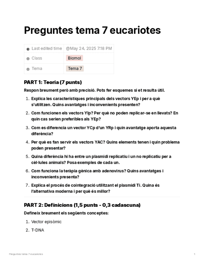 He publicado nuevos apuntes de 2º Biologia molecular i tècniques de DNA recombinant: Preguntes-tema-7-eucariotes.pdf